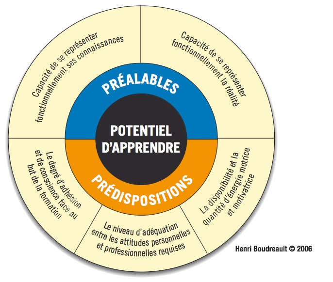 Les préalables constituent qu’une partie des conditions pour une bonne intégration des élèves en formation professionnelle. L’autre partie, que j’ai constatée, est constituée des prédispositions. Les prédispositions sont composées du degré d’adhésion de l’élève au but de la formation, du niveau d’adéquation entre les attitudes personnelles et les attitudes professionnelles requises et de la disponibilité et de la quantité d’énergie motrice et motivatrice.