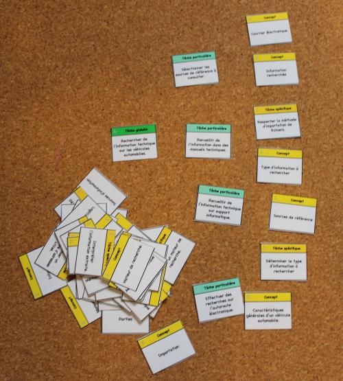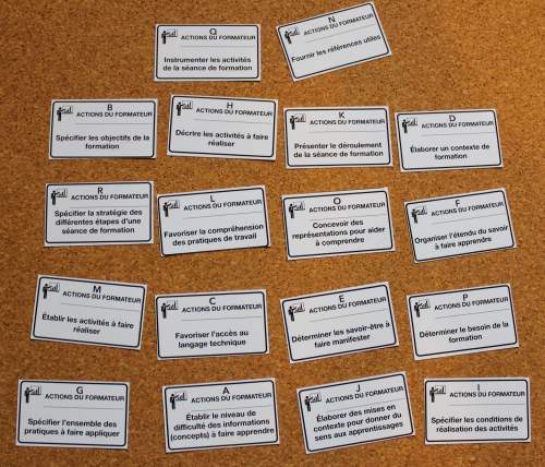Ces cartes, si vous y mettez le temps et que vous êtes bricoleur, vous seront d’une grande utilité et ils vous permettront de mettre de l’action en classe. Souvent, on sépare en deux catégories l’enseignement, l’enseignement pratique et celle théorique. Dans les nombreuses formations que je donne, je constate souvent que la partie théorique est négligée pour aller le plus rapidement à la pratique. Que ce soit en classe, ou en atelier, ces deux endroits exigent la mise en pratique d’idées. Dans la pratique, nous réalisons des activités motrices et en classe nous devrions être en mesure de placer les apprenants en actions pour qu’ils puissent réaliser les activités mentales nécessaires à une mise en pratique intelligente de ce qu’ils savent dans le concret.
