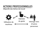 La troisième catégorie d’éléments portait sur dix finalités de l’action. L’action pouvait porter sur un problème à résoudre, des données à traiter, un concept à comprendre, un processus à respecter, une instruction à exécuter, un geste à poser, une action mentale (procédure intellectuelle) à appliquer, des opérations à réaliser, une action motrice (procédure technique) à appliquer ou une tâche à réaliser.